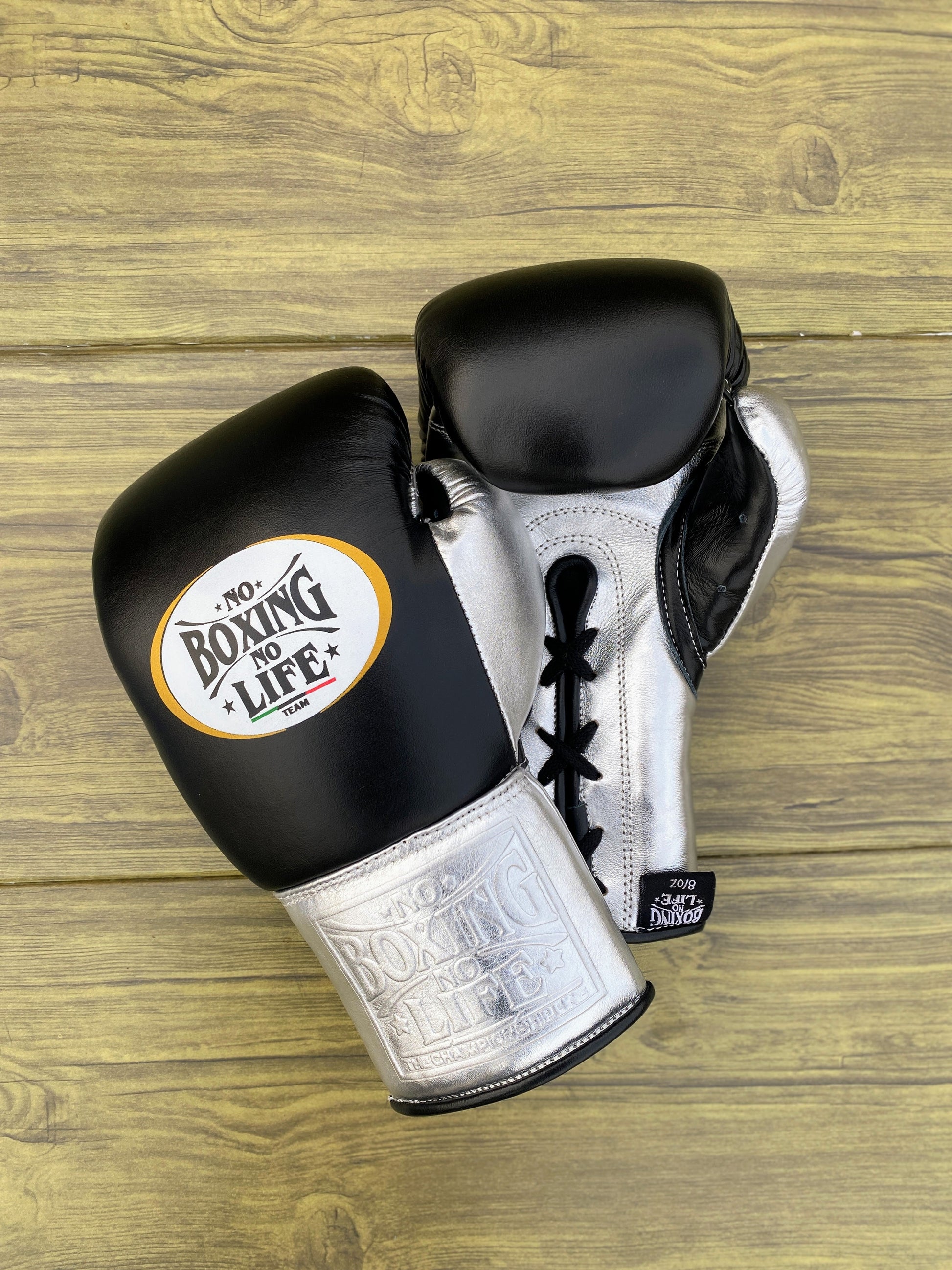 No boxing no life Black/Silver boxing gloves 4-24oz , professional soft sparring gear
