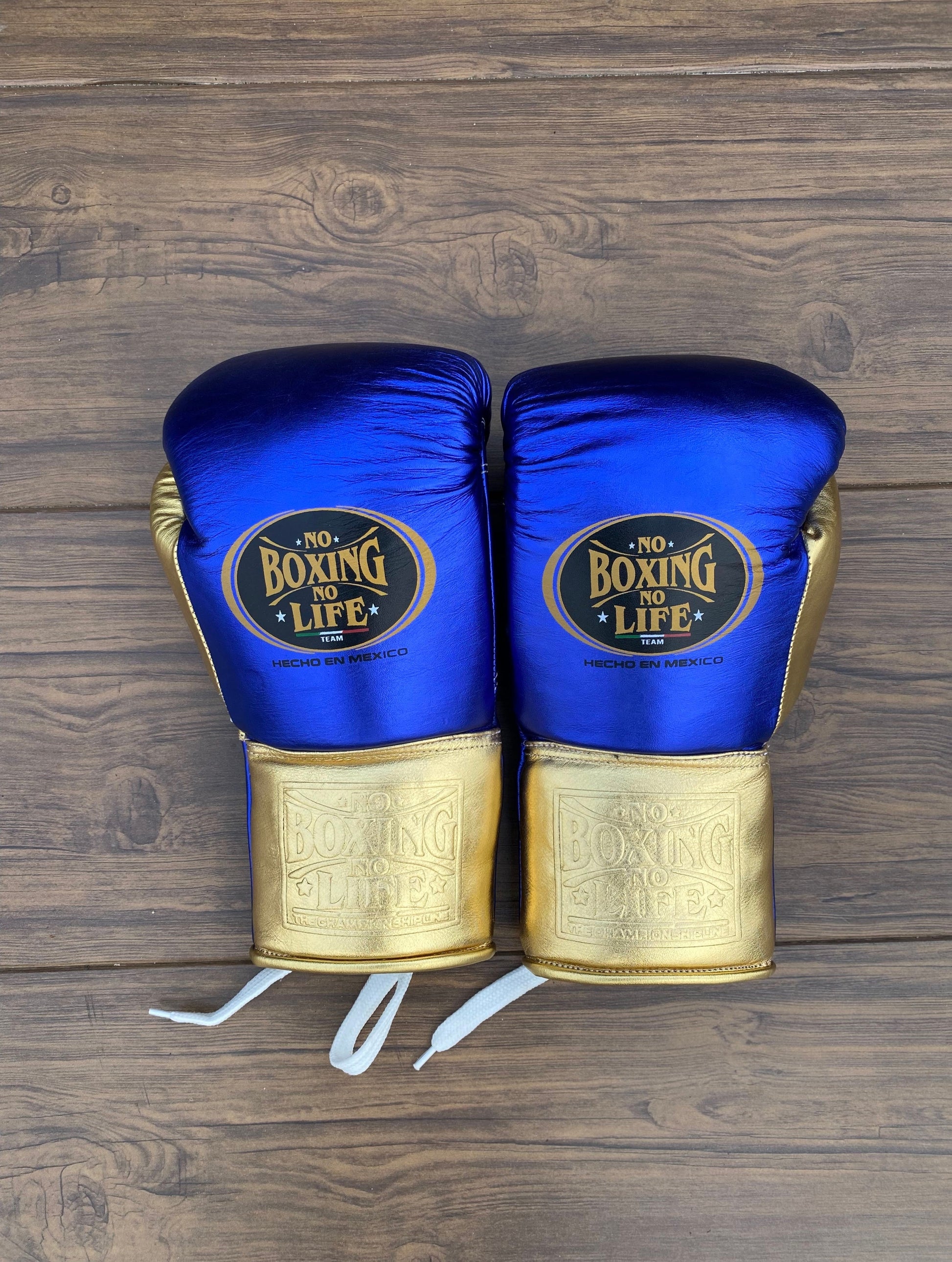 No boxing no life Blue/Gold boxing gears , soft cushion sparring gloves