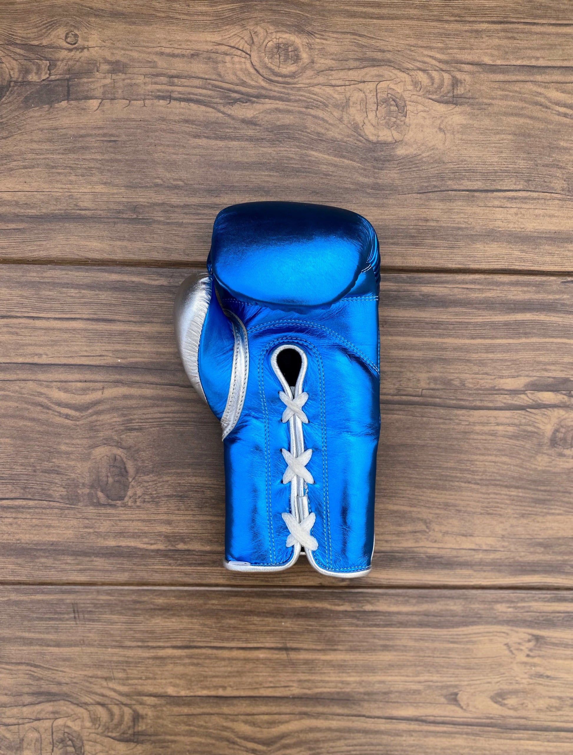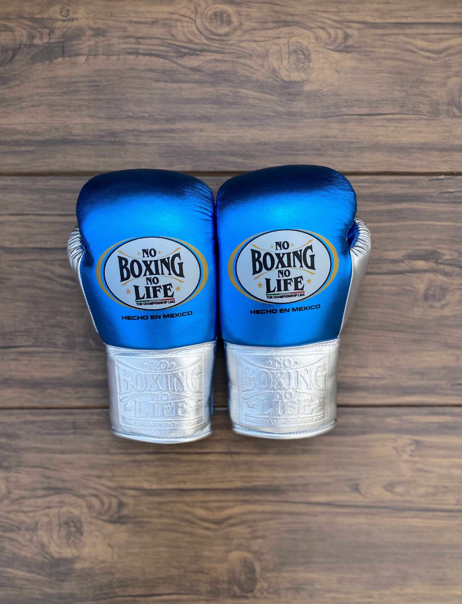 No boxing no life Blue/Silver boxing gears 4-24oz , professional soft-fit sparring gloves