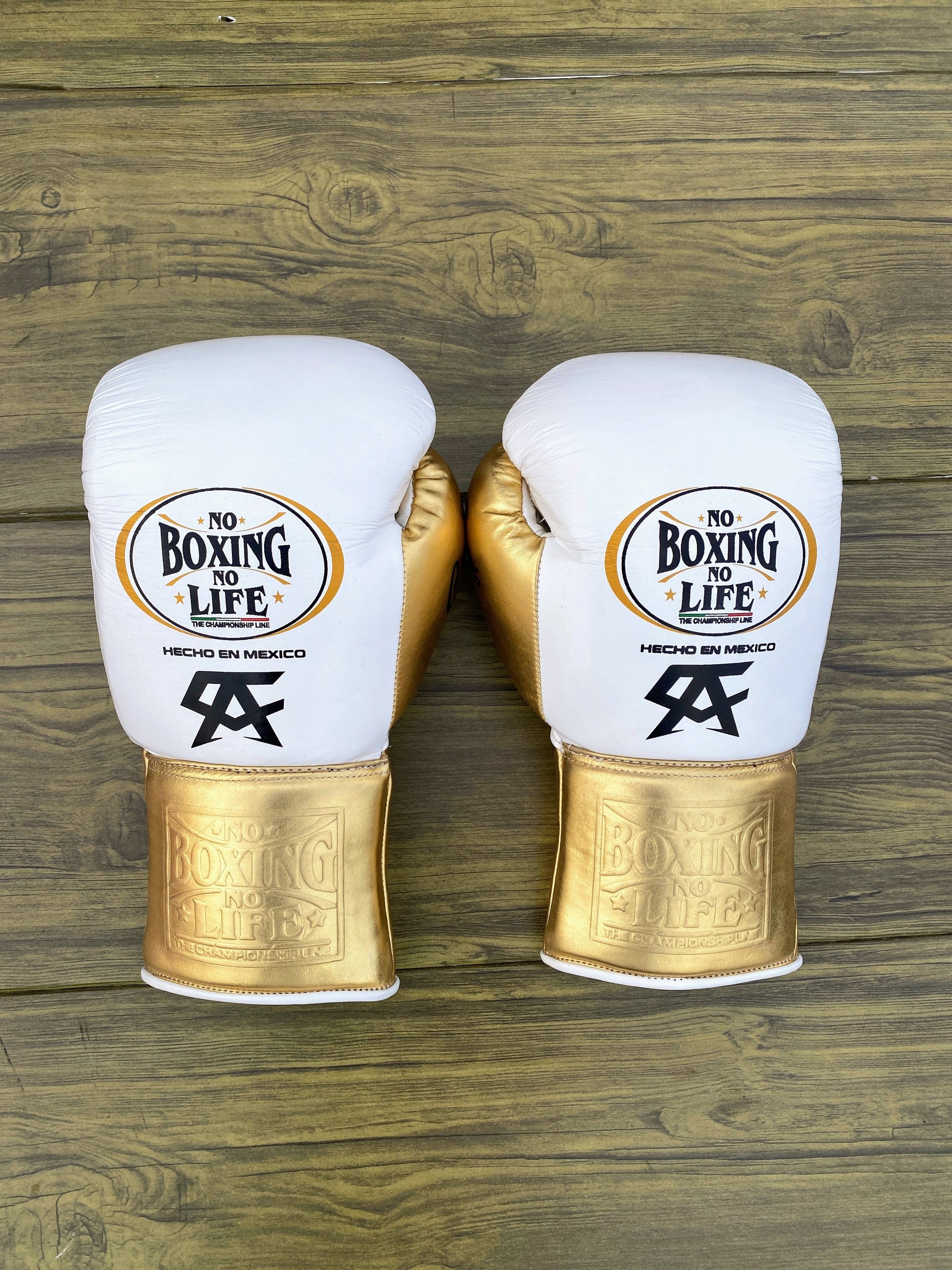 No boxing no life White/Gold boxing gears , premium soft-padding training gloves